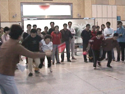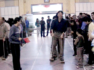 比賽當(dāng)天的運(yùn)動(dòng)場(chǎng)上,員工情緒高漲,精神飽滿,同伴之間相互鼓勵(lì),吶喊加油,大家你追我趕,勇爭(zhēng)第一。在集眾人協(xié)調(diào)之力的集體木屐比賽中,“左右、左右”的號(hào)子不絕于耳;投籃比賽場(chǎng)上,大家爭(zhēng)先恐后,小小籃球卻總不肯輕易入筐;集體跳繩場(chǎng)地上,跳繩在八人的身影中上下翻飛,形成了一道美麗的風(fēng)景;由于綁腿接力比賽的要求是既不能兩人分開又要跑得最快,,為了保持平衡,各組隊(duì)員姿態(tài)各異,有的健步如飛,有的如老鷹伴著小雞,有的像是在跳優(yōu)雅的探戈,惹得場(chǎng)邊的觀眾個(gè)個(gè)笑得前仰后合。這些場(chǎng)景將運(yùn)動(dòng)會(huì)其樂融融的氣氛推向高潮,大家在一片歡聲笑語中結(jié)束了這次別開生面的趣味運(yùn)動(dòng)會(huì)。