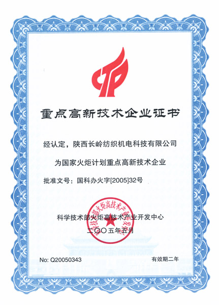 日前, 2005年國(guó)家火炬計(jì)劃重點(diǎn)高新技術(shù)企業(yè)認(rèn)定工作已經(jīng)結(jié)束。根據(jù)《國(guó)家火炬計(jì)劃重點(diǎn)高新技術(shù)企業(yè)認(rèn)定條件和管理辦法(試行)》的有關(guān)規(guī)定,經(jīng)陜西省科學(xué)技術(shù)廳的推薦,國(guó)家科技部的審核(科辦火字〔2005〕32號(hào)文)批準(zhǔn),陜西長(zhǎng)嶺紡織機(jī)電科技有限公司等346家企業(yè)被認(rèn)定2005年國(guó)家火炬計(jì)劃重點(diǎn)高新技術(shù)企業(yè)。這是對(duì)長(zhǎng)嶺紡電科技技術(shù)水平和研發(fā)能力的一次重要的肯定和褒獎(jiǎng),也是公司向用戶和社會(huì)公眾展示其雄厚實(shí)力的又一佐證。
