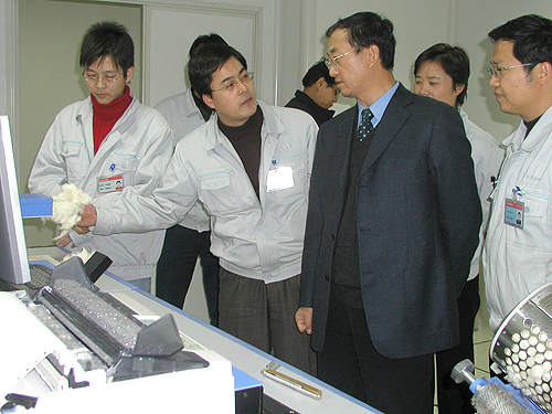 通過(guò)參觀(guān)和了解,徐文英會(huì)長(zhǎng)深有感觸地說(shuō):長(zhǎng)嶺紡電早就聞其名,但是百聞不如一見(jiàn),今天看到長(zhǎng)嶺紡電較強(qiáng)的科研開(kāi)發(fā)實(shí)力、先進(jìn)的生產(chǎn)設(shè)備、嚴(yán)格的質(zhì)量管理體系令人欣慰,而這正是確保長(zhǎng)嶺紡電在行業(yè)領(lǐng)先地位的關(guān)鍵所在。在參觀(guān)中,徐文英會(huì)長(zhǎng)對(duì)長(zhǎng)嶺紡電研發(fā)的XJ120快速棉纖維性能測(cè)試儀進(jìn)行詳細(xì)了解,認(rèn)為該產(chǎn)品打破國(guó)際市場(chǎng)壟斷,填補(bǔ)國(guó)內(nèi)空白,更貼近國(guó)內(nèi)棉花的測(cè)試和用戶(hù)的需求。他說(shuō),棉紡織協(xié)會(huì)將堅(jiān)持“為企業(yè)服務(wù)的宗旨”,利用棉紡織行業(yè)形勢(shì)分析會(huì)、研討會(huì)等推廣長(zhǎng)嶺紡電品牌、宣傳長(zhǎng)嶺紡電產(chǎn)品,尤其是著重推廣打破國(guó)外壟斷的棉纖維檢測(cè)儀,更大范圍地滿(mǎn)足專(zhuān)業(yè)檢測(cè)機(jī)構(gòu)和紡織企業(yè)的需要。
