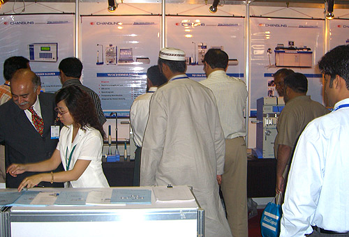 此次紡機(jī)展,我公司展出的條干儀、毛羽儀、單紗強(qiáng)力儀、棉纖維檢測儀、自動(dòng)絡(luò)筒清紗器等產(chǎn)品均受到巴基斯坦用戶的關(guān)注。展會(huì)期間共散發(fā)產(chǎn)品宣傳資料3000多份,接待客戶2000多人次,有購買意向的客戶近百家。另外,公司還在卡拉奇展覽中心舉辦了長嶺紡電產(chǎn)品推介會(huì),公司領(lǐng)導(dǎo)和技術(shù)人員向用戶介紹了企業(yè)的基本情況和產(chǎn)品情況。
