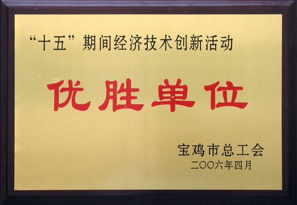 在日前寶雞市總工會(huì)召開(kāi)的當(dāng)好主力軍、建功“十一五” 職工經(jīng)濟(jì)技術(shù)創(chuàng)新工作動(dòng)員大會(huì)上,我公司作為寶雞市“十五”期間職工經(jīng)濟(jì)技術(shù)創(chuàng)新優(yōu)勝單位受到表彰,紡研所系列產(chǎn)品主管郭紅生被授予創(chuàng)新標(biāo)兵的光榮稱號(hào)。