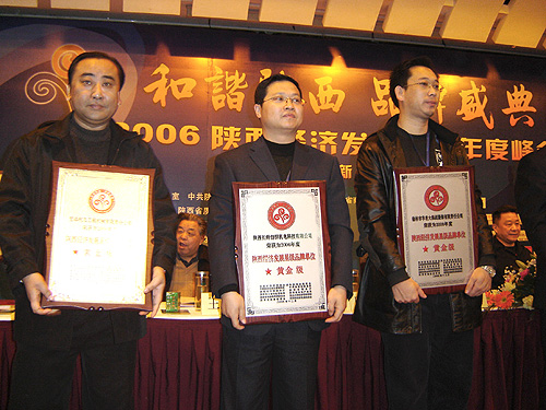 為更好的加強陜西省自主創(chuàng)新和自主品牌建設(shè)事業(yè)的發(fā)展,樹立陜西品牌典型,促進陜西經(jīng)濟全面發(fā)展,1月20日,和諧陜西、品牌盛典-----2006陜西經(jīng)濟發(fā)展品牌年度峰會在西安召開,陜西200余個知名品牌榮獲首屆陜西行業(yè)十大品牌、首屆陜西十大杰出品牌人物獎等6項13個行業(yè)的獎勵。我公司被授予陜西經(jīng)濟發(fā)展黃金級品牌單位、陜西省重點推廣品牌、陜西電子信息行業(yè)十大品牌榮譽稱號。