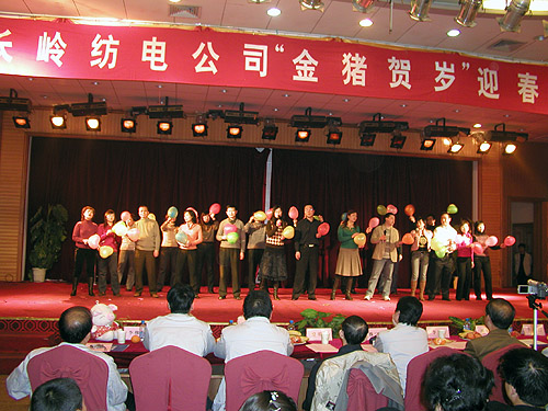 激情豪邁詠舊歲,輕歌曼舞迎新年。2007年2月13日,公司在寶雞萬(wàn)利大酒店舉行了長(zhǎng)嶺紡電“金豬賀歲”迎春聯(lián)歡會(huì)。公司董事長(zhǎng)李強(qiáng)、總經(jīng)理薛冬泉、公司領(lǐng)導(dǎo)班子以及老領(lǐng)導(dǎo)李友仁、老專家曾明高與公司500多名員工齊聚聯(lián)歡會(huì)。聯(lián)歡會(huì)現(xiàn)場(chǎng)張燈結(jié)彩,喜氣洋洋,空氣中滿溢著濃濃的節(jié)日氣氛。