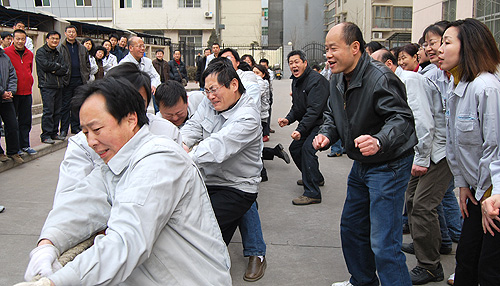 公司5個分會11個部門的近百名員工參加了比賽。雖然時至隆冬、寒風(fēng)料峭,但不管是場上隊員還是場下拉拉隊,熱情絲毫不減,比賽在熱烈歡快的氣氛中進行,激烈而又有序。經(jīng)過兩個多小時的激烈角逐,制造部一隊?wèi){借雄厚的實力和耐力獲得了拔河比賽的冠軍,在第二、三名的較量中,制造部二隊和銷售公司實力相當(dāng),雙方隊員都竭盡全力,制造部二隊略高一籌,以耐力取勝獲亞軍。在跳繩比賽中,財務(wù)部憑借良好的技術(shù)水平和團隊精神勇奪第一,制造部的巾幗群英們發(fā)揮出色奪得第二,質(zhì)量管理部和綜合部不分伯仲,并列第三。