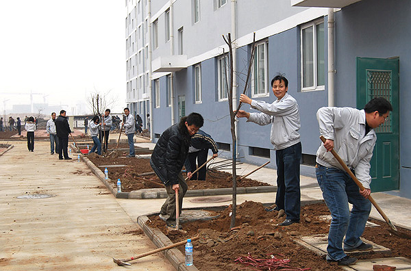 一場春雨剛過,春風拂面,乍暖還寒,參加植樹的30多名員工一大早就來到了新建住宅小區(qū)植樹現(xiàn)場,大家拿著鐵锨、鐵鎬等工具,有的忙著舞鎬挖坑,有的施肥撒藥,有的培土澆水,干勁沖天。經(jīng)過兩個多小時的勞動,大家共種植了玉蘭、女貞、紅葉李、銀杏等樹木二百多棵??粗慌排磐Π蔚男?,每個員工洋溢著喜悅的笑容,大家感到栽培下去的不僅僅是一顆小樹,更是一份祝愿和希望。一點綠意承載著我們的情感,一棵小樹寄托著大家的希望,愿它快快成長并和我們一起共同見證長嶺紡電的發(fā)展壯大。