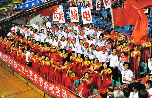 本次合唱節(jié)是市總工會開展的慶祝新中國成立60周年十大活動之一,同時也是新時期寶雞職工精神面貌的一次集中展示。參加此次全市職工合唱節(jié)的共有來自全市鐵路、銀行、稅務、石油、鋼管等各條戰(zhàn)線的17支合唱團,經過評選有10支合唱團參加了合唱節(jié)的展演。當天的展演現(xiàn)場歌聲雷動,掌聲陣陣,參賽的10個合唱團帶來了《祖國不會忘記》、《祖國頌》、《走進新時代》等歌曲,展演現(xiàn)場亮點頻出,各合唱團充分彰顯了各自不俗的實力,秀出了各自的風采。長嶺紡電合唱團自9月初成立以來,公司員工積極參與,經過20余天的艱苦排練,展演曲目《春天的故事》和《咱們工人有力量》使廣大員工在切實感受祖國日新月異巨大變化的同時,充分展示了企業(yè)員工的豪邁氣概。