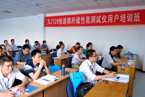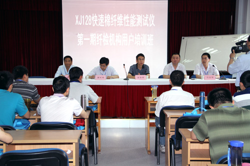 此次培訓(xùn)是長(zhǎng)嶺紡電公司針對(duì)“XJ128快速棉纖維性能測(cè)試儀”產(chǎn)品舉辦的第一期用戶培訓(xùn)班。培訓(xùn)班歷時(shí)7天,辦學(xué)方式采用理論講授和現(xiàn)場(chǎng)教學(xué)相結(jié)合,產(chǎn)品研發(fā)人員與客戶面對(duì)面交流,解疑釋惑。從產(chǎn)品測(cè)量原理、使用方法、日常維護(hù)及故障處理等方面進(jìn)行詳細(xì)的論述。中纖局測(cè)試中心張保國(guó)主任在開(kāi)班儀式上要求各位學(xué)員通過(guò)這次難得的學(xué)習(xí)機(jī)會(huì),與老師、專(zhuān)家充分交流,虛心請(qǐng)教,真正成為國(guó)產(chǎn)“HVI”應(yīng)用的行家里手。