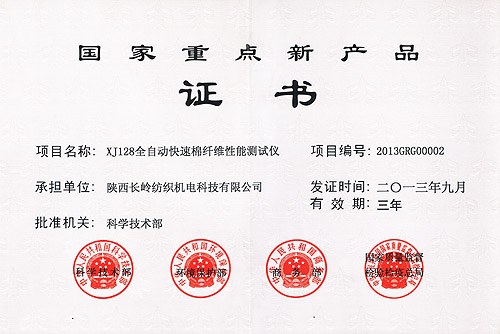 經(jīng)過(guò)申報(bào)、省級(jí)初審、國(guó)家答辯評(píng)審,公司自主研發(fā)的XJ128快速棉纖維性能測(cè)試儀被認(rèn)定為2013年度國(guó)家重點(diǎn)新產(chǎn)品,同時(shí)被列入2013年度國(guó)家重點(diǎn)新產(chǎn)品計(jì)劃(有效期三年)。公司獲得由國(guó)家科技部、環(huán)保部、商務(wù)部及質(zhì)檢總局聯(lián)合頒發(fā)的“國(guó)家重點(diǎn)新產(chǎn)品證書(shū)”,同時(shí)作為擇優(yōu)對(duì)象獲得新產(chǎn)品研發(fā)補(bǔ)助。