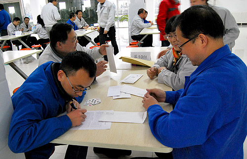 正月十四,一場久違的瑞雪帶來了節(jié)日的喜慶與祝福。紡電公司根據(jù)電氣公司的鬧元宵活動(dòng)安排,動(dòng)靜結(jié)合,在職工餐廳舉行了“智力撲克比賽”。本次比賽由8個(gè)分會(huì)9個(gè)參賽隊(duì)108人參賽,為了使本次比賽公平公正也更能體現(xiàn)參賽者的技術(shù)水平,組委會(huì)借鑒其他賽事,制定了新的比賽規(guī)則,要求每1桌分別使用相同的27付牌型,且東南西北四個(gè)方向位置不變,經(jīng)過2個(gè)多小時(shí)的激烈比賽,紡研所、織機(jī)制造部、紡電制造部分獲團(tuán)體前三名,陳玉國、徐立、常寧、楊萌獲四大最佳牌手。