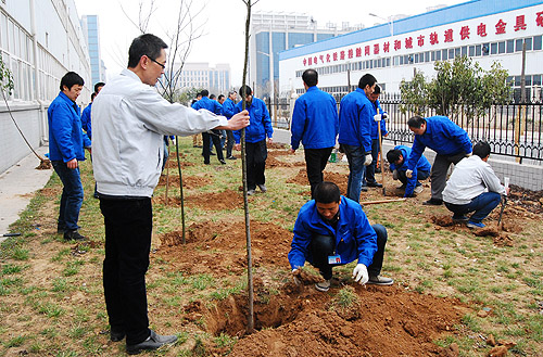 陽春三月,萬物復(fù)蘇,一年一度的植樹節(jié)即將到來。為增強全體職工綠化意識,營造優(yōu)美的園區(qū)環(huán)境,近日,紡電公司以部門為單位組織員工進行義務(wù)種樹活動,在園區(qū)種植近200株“國槐”、“大葉女貞”等樹木,美化園區(qū)環(huán)境。