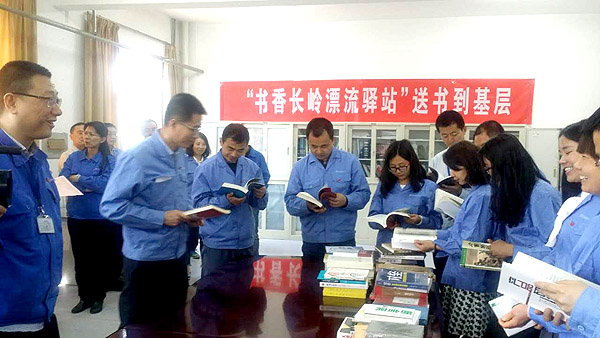 4月28日上午,長(zhǎng)嶺電氣公司黨委工作部贈(zèng)書(shū)儀式在紡電公司綜合樓三層閱覽室舉行。電氣公司黨委工作部部長(zhǎng)張瑞華代表電氣公司黨委,將八十多本黨建、經(jīng)濟(jì)、管理、文學(xué)、勵(lì)志等各類圖書(shū)送到了紡電公司員工手中, 標(biāo)志著“書(shū)香長(zhǎng)嶺漂流驛站”正式在我公司落戶。公司黨總支書(shū)記高金寬、各支部書(shū)記、支部委員等三十多名員工參加了儀式。