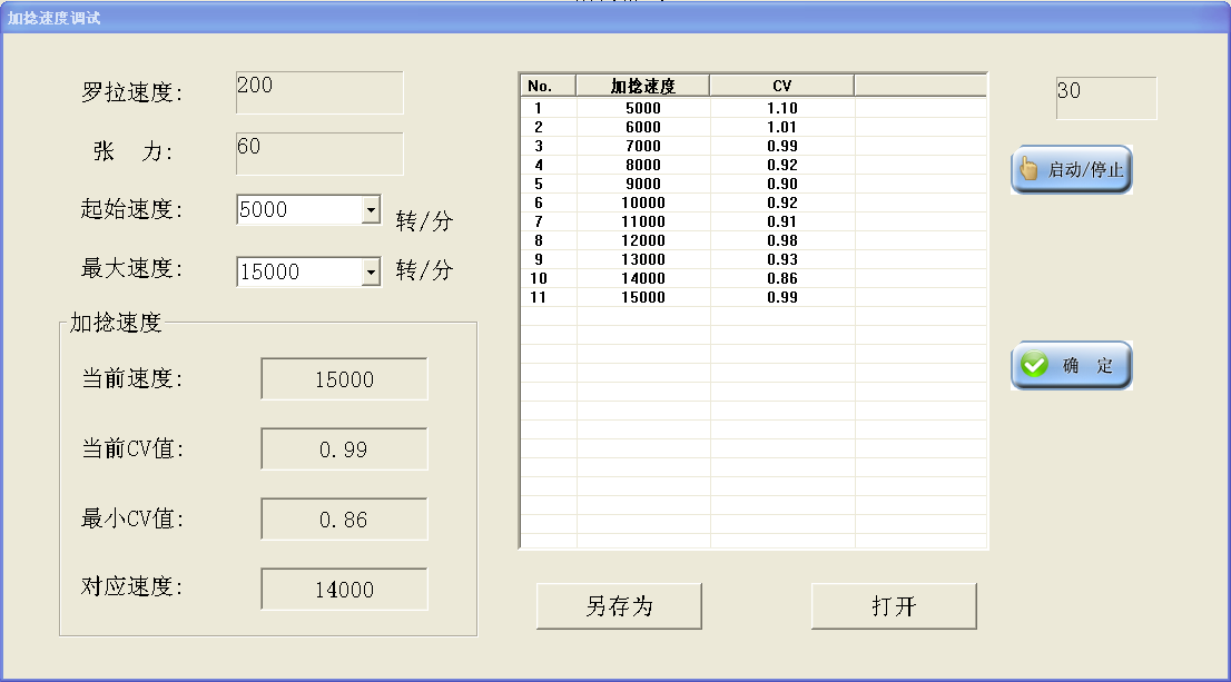 加捻速度調(diào)試功能可以幫助用戶選擇最佳張力、最佳測試速度和最佳加捻速度;