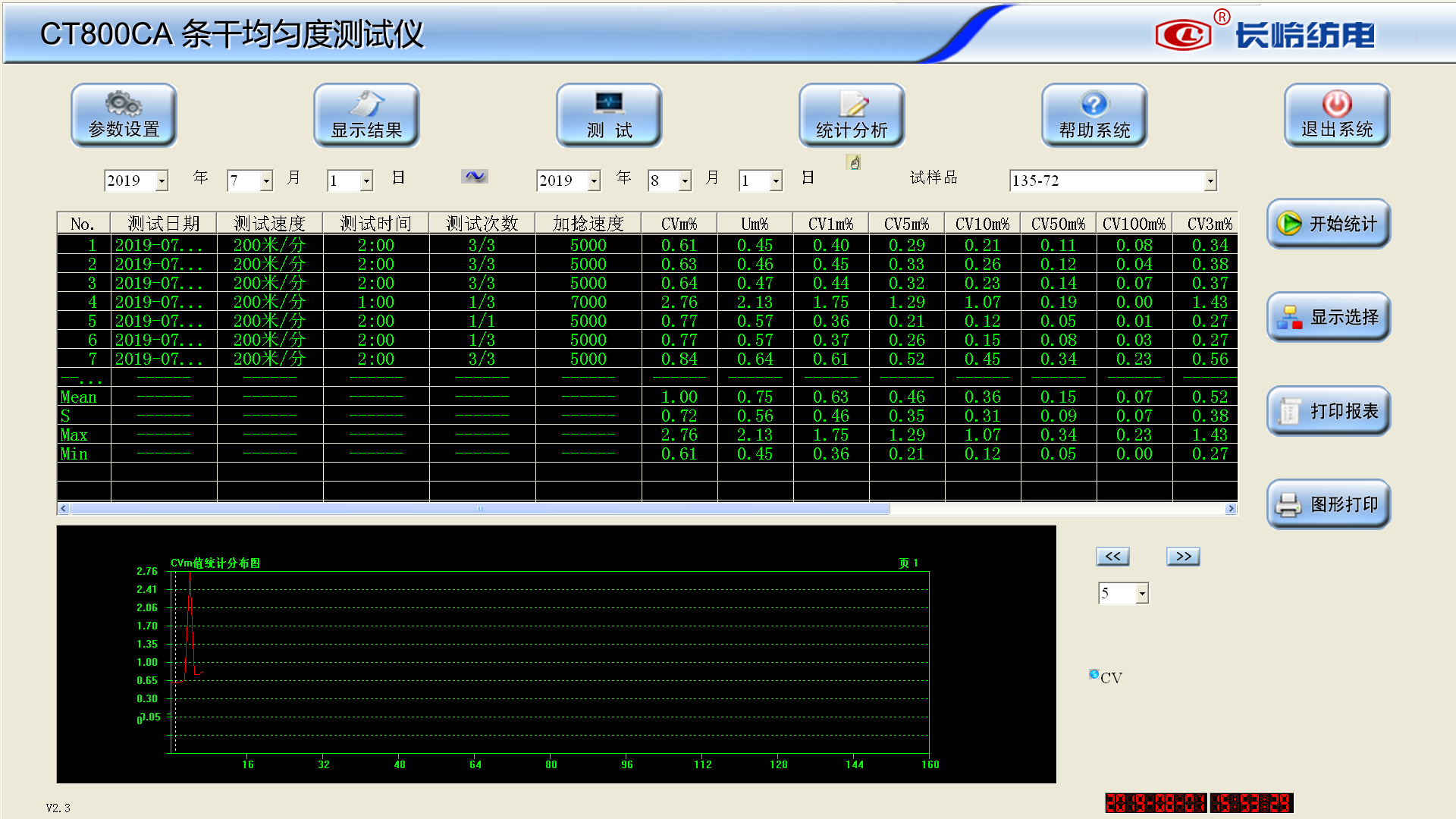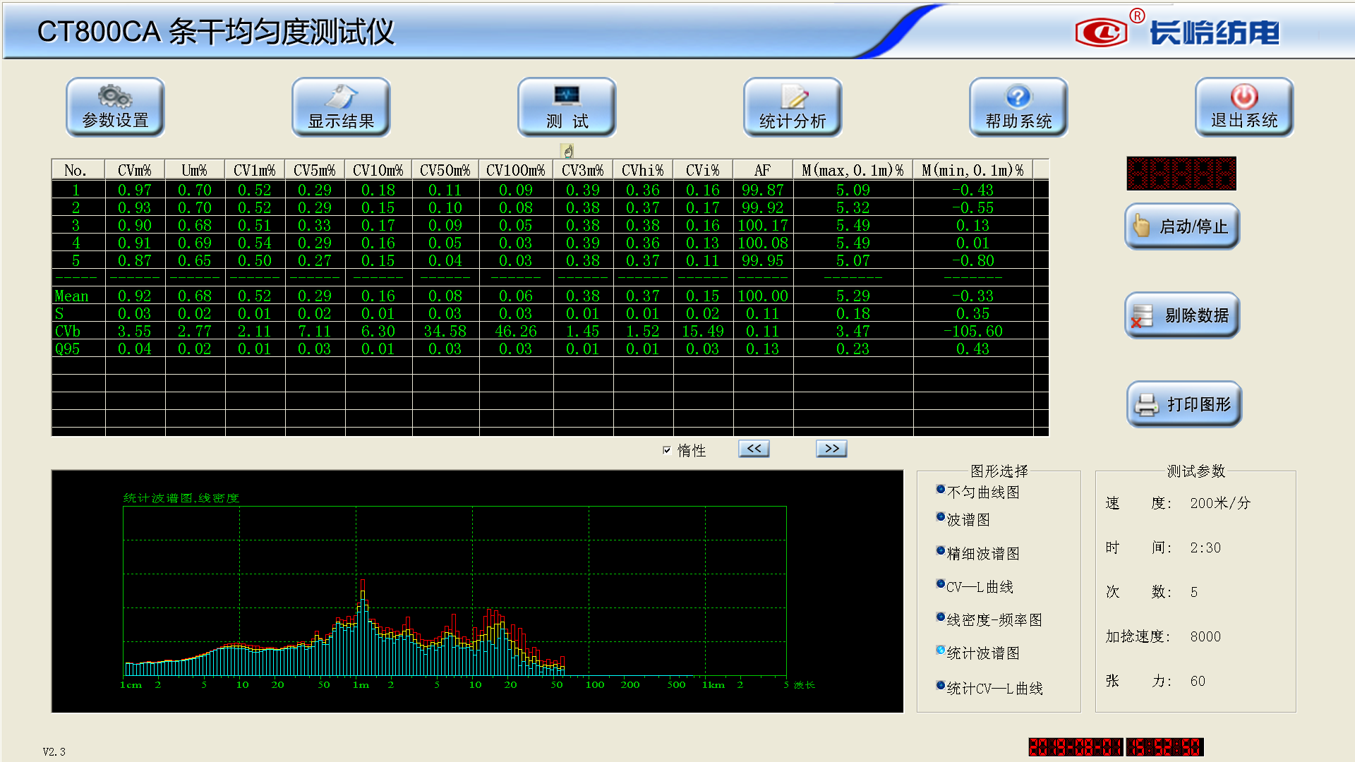 按照相應(yīng)的設(shè)定時間進(jìn)行統(tǒng)計,給出紗線的特定指標(biāo)的變化趨勢