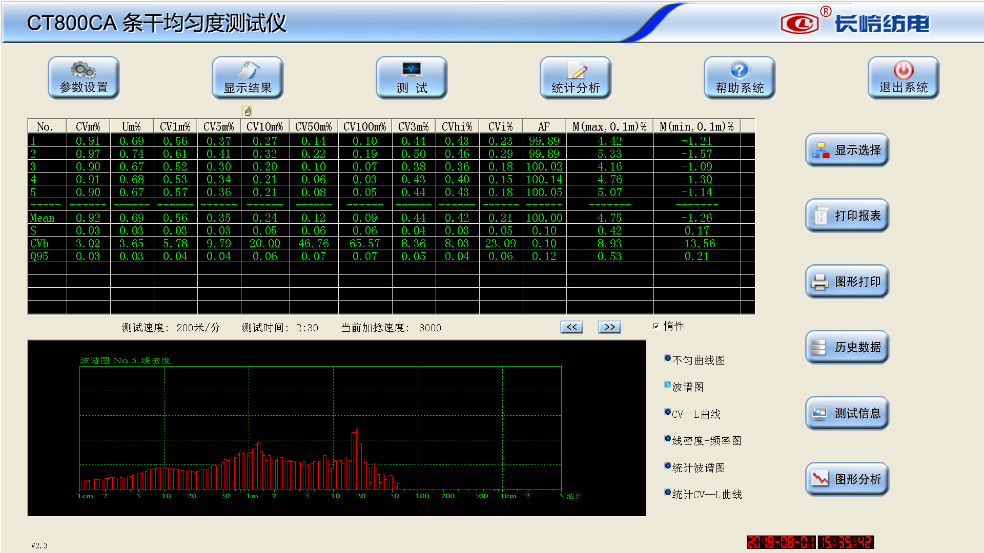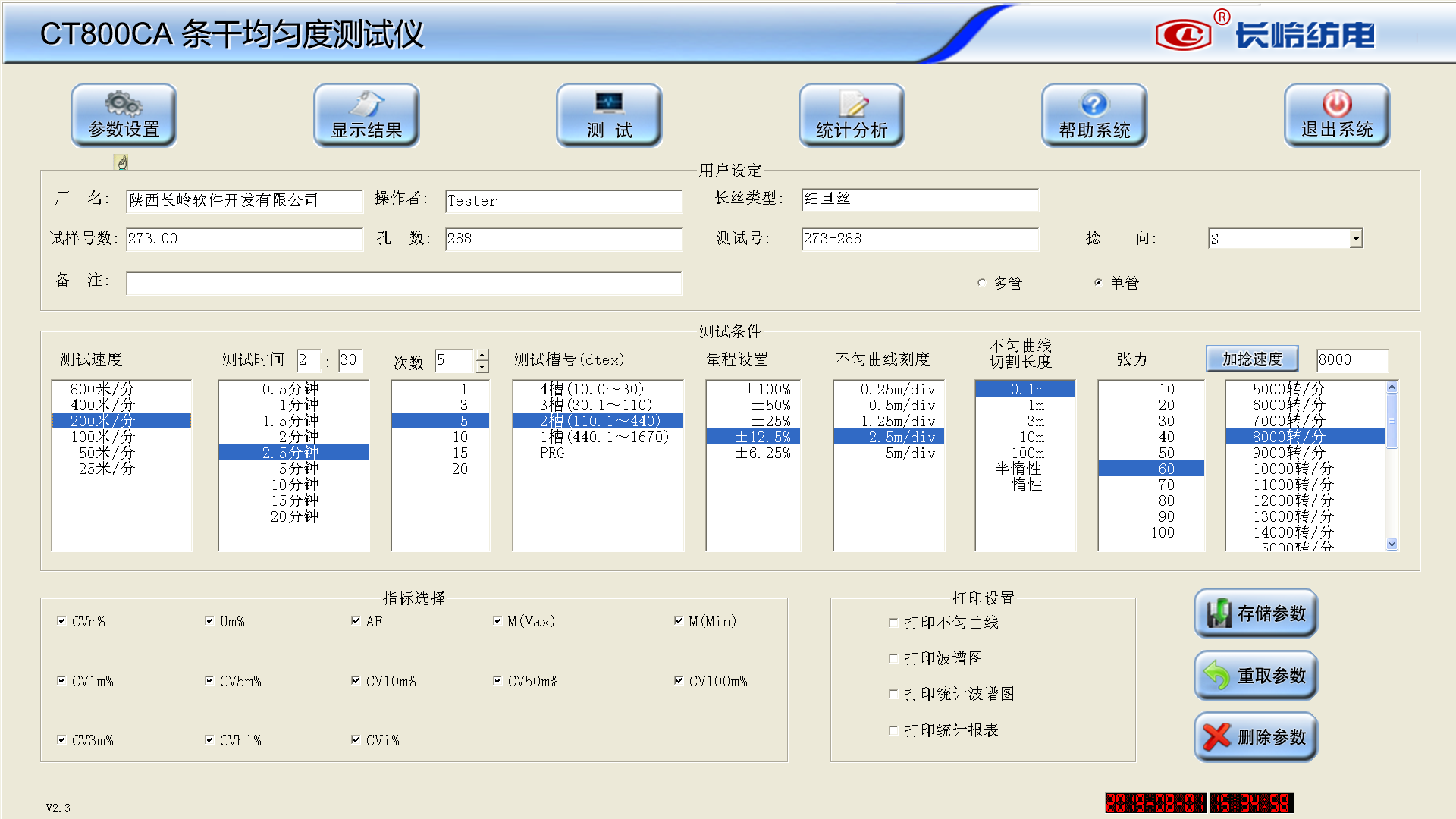 CT800CA條干均勻度測試分析儀是一種測試和分析化纖長絲條干不勻程度、考核化纖長絲質(zhì)量、指導(dǎo)長絲生產(chǎn)的高精密儀器。該儀器全自動測試,測試信息豐富,能提供多項數(shù)據(jù)和圖形指標(biāo)評價紗線質(zhì)量信息,十分有利于長絲生產(chǎn)企業(yè)過程控制和提高化纖長絲的質(zhì)量。