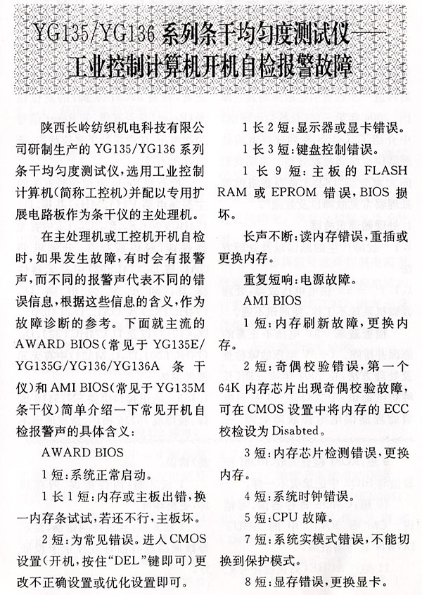 YG135/YG136系列條干均勻度測試儀—工業(yè)控制計算機開機自檢報警故障