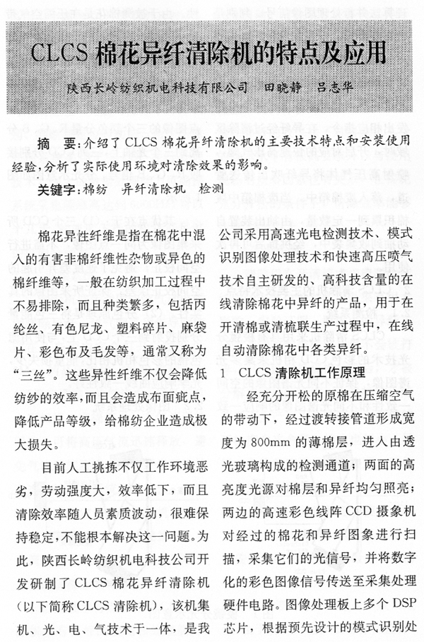CLCS棉花異纖清除機(jī)的特點及應(yīng)用