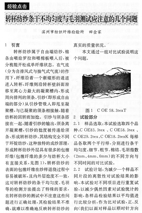 轉(zhuǎn)杯紡紗條干不均勻度與毛羽測(cè)試應(yīng)注意的幾個(gè)問(wèn)題