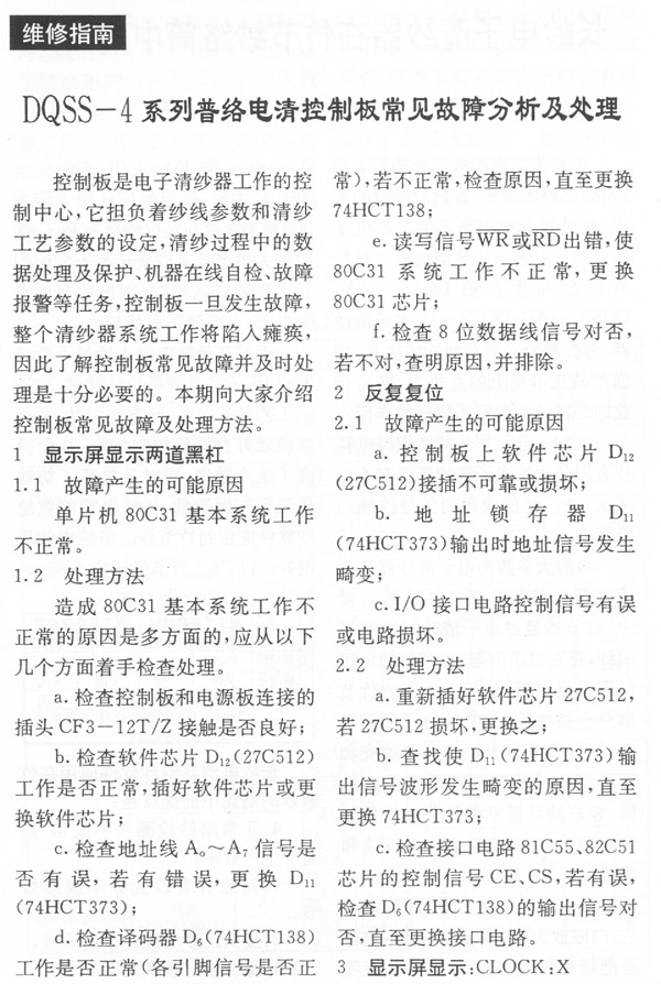 DQSS-4系列普絡(luò)電清控制板常見故障分析及處理