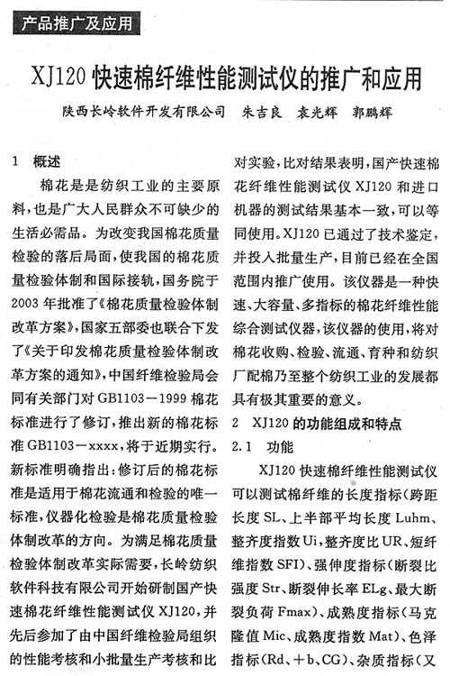 XJ120快速棉纖維性能測試儀的推廣和應(yīng)用