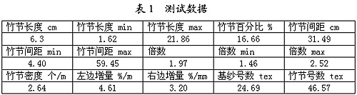 (5)竹節(jié)間距:指被測試樣中竹節(jié)間距離的平均值,單位為cm。