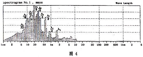 著重強(qiáng)調(diào)的是,無(wú)規(guī)律竹節(jié)紗波譜圖中的這類“山狀”波仍是機(jī)械波,與常規(guī)紗線中的“山狀”牽伸波有本質(zhì)不同。牽伸波純屬隨機(jī)不勻故不伴有諧波。