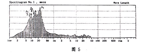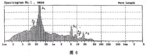 在時(shí)域里所表現(xiàn)的是無(wú)規(guī)律的近周期性波動(dòng)與密集成簇的竹節(jié)有規(guī)律的錯(cuò)落分布相結(jié)合構(gòu)成復(fù)雜的組合。近周期性波動(dòng)形成λ1平均波長(zhǎng)較短的“山狀”機(jī)械波;而錯(cuò)落有序的成簇竹節(jié)又一簇一簇地周期性變化形成波長(zhǎng)分別為λ2≈6 m和λ3≈18 m的“煙囪”狀機(jī)械波。