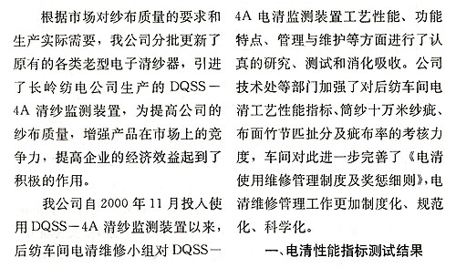 DQSS-4A清紗檢測裝置性能及應(yīng)用