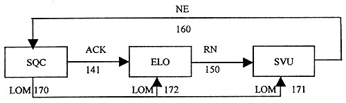 織機順序動作控制系統(tǒng)主要控制織機的正點動、反點動、運轉(zhuǎn)、停止等動作。另外,為了使機器能夠協(xié)調(diào)工作,還要為系統(tǒng)提供必要的握手信號。這部分主要包括可編程控制器SQC和剎車單元SBU,工作框圖如圖3。為了操作安全,運轉(zhuǎn)、正點動、反點動采用雙手操作按鈕,PBX為雙手互鎖按鈕。ACK為預(yù)備信號通知有關(guān)單元做預(yù)備動作,LOM信號為運轉(zhuǎn)信號通知各控制單元進入運轉(zhuǎn)狀態(tài),RN信號為送經(jīng)系統(tǒng)準(zhǔn)備好,NE信號為引緯系統(tǒng)準(zhǔn)備好,織機的啟動過程如圖4。SQC響應(yīng)到運轉(zhuǎn)按鈕信號后發(fā)出ACK信號,ELO收到ACK信號后做反沖(Kick Back)動作,若反沖動作在2s內(nèi)完成,ELO則發(fā)出RN信號,若SVU準(zhǔn)備好并且收到RN信號的后,則發(fā)出NE信號,SQC收到NE信號后發(fā)出LOM信號,通知各控制單元進入運轉(zhuǎn)狀態(tài)。圖4 織機的停車動作分為兩種,定位停車和緊急停車,手動停、經(jīng)停、緯停、反點動停等屬于定位停車,各種故障停車屬于緊急停車。定位停車在正轉(zhuǎn)定時信號FT的上升沿施加剎車高壓,停止后自動反轉(zhuǎn)到設(shè)定位置。自動反轉(zhuǎn)停車位置由RT1和RT2兩個反轉(zhuǎn)定時信號決定,RT1為反點動和緯停以外其他定位停車的自動反轉(zhuǎn)定時信號,RT2為緯停時自動反轉(zhuǎn)定時信號。BON、BON0為剎車高壓信號,F(xiàn)S為緯停信號,DR為經(jīng)停信號,SE為經(jīng)向傳感器允許信號。