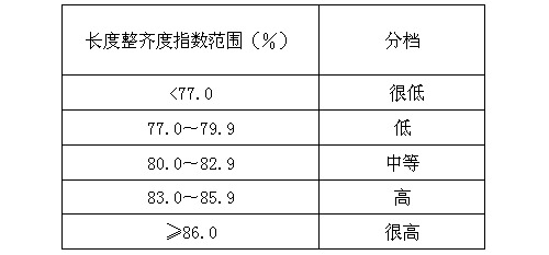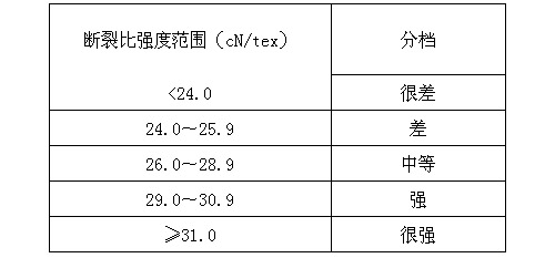 c) 斷裂比強(qiáng)度為3.2mm隔距,HVICC校準(zhǔn)水平;斷裂比強(qiáng)度分檔見表4。