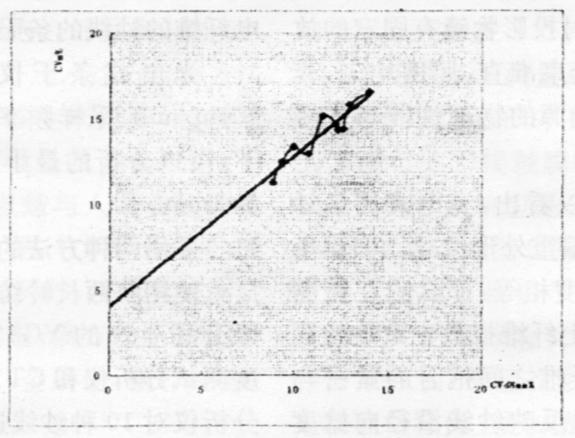 通過對(duì)測(cè)試結(jié)果的回歸分析(參見圖3),可得出如下的相關(guān)關(guān)系表達(dá)式: