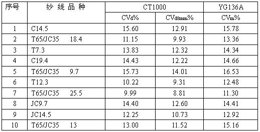 使用陜西長嶺紡織機(jī)電科技有限公司生產(chǎn)的YG136A條干均勻度測(cè)試分析儀和CT1000紗線外觀分析儀對(duì)10種紗線進(jìn)行測(cè)試,