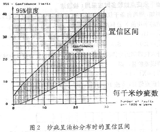 圖2 紗疵呈泊松分布時(shí)的置信區(qū)間